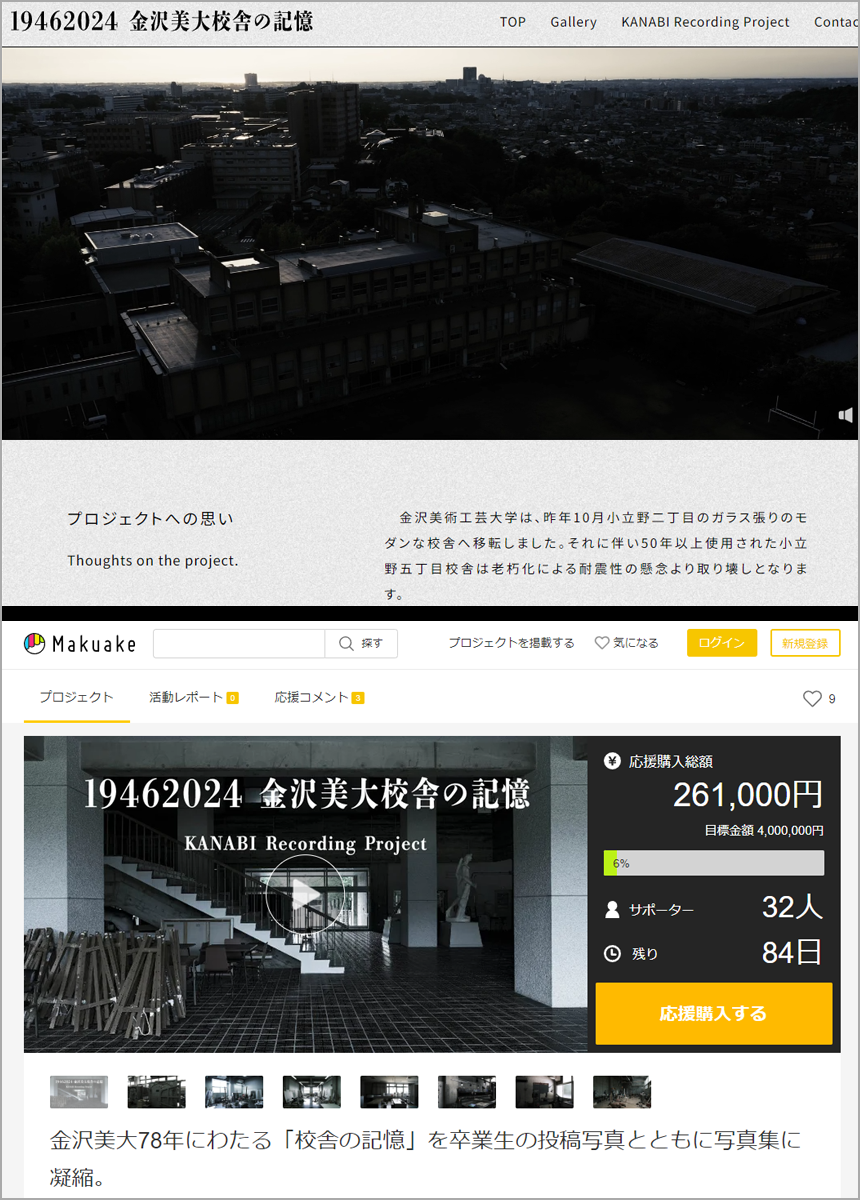 *プロジェクトの企画趣旨並びに・プロジェクト概要・校舎の写真の一部が下記 金沢美大校舎の記録WEBに記載されています。